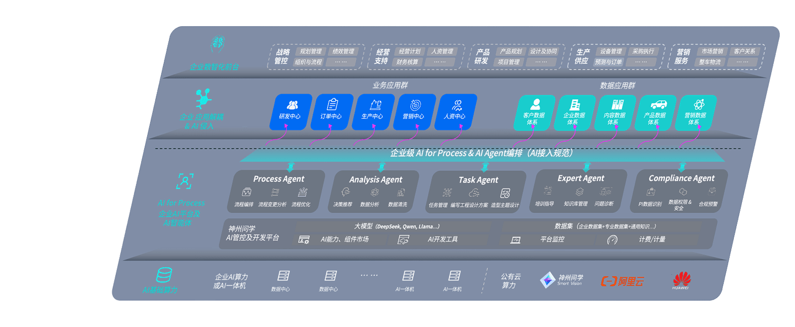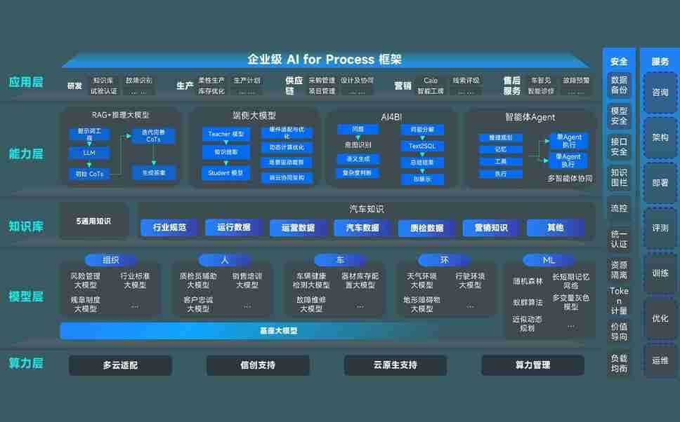 端到端的一站式AI工作空间深度融合了从企业战略规划到日常经营的全流程业务板块,,定向解决车企内部领域多、、部门多、、、链条长、、、、场景碎片化等难题,,,,支持车企快速构建以AI为核心的生产力写作体系,,实现任务执行与AI能力的无缝集成与交互